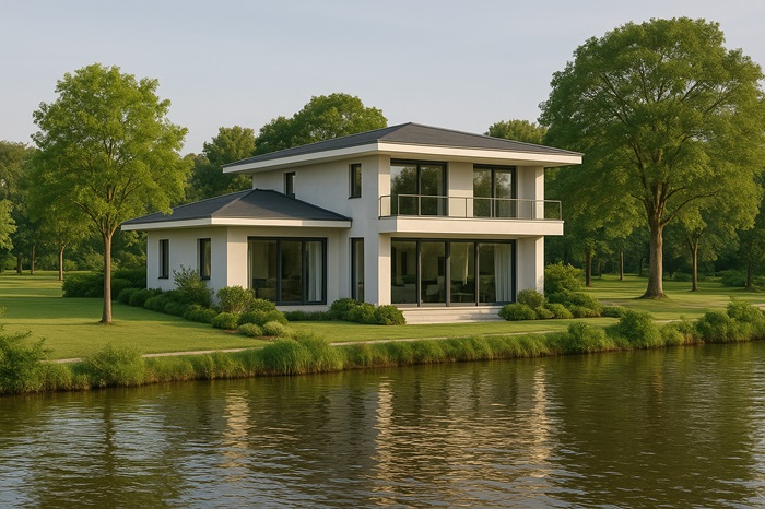 Khái niệm: Biệt thự ven sông là loại hình biệt thự cao cấp tọa lạc gần sông, hồ hoặc kênh rạch, được thiết kế hướng ra mặt nước, tận dụng cảnh quan và giá trị sinh thái.